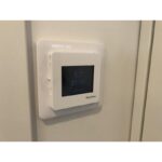 Riscaldamento Efficiente: Pompa di calore aria-aria e riscaldamento a pavimento nel bagno.