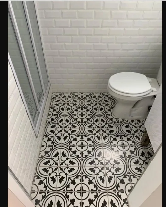 • Rivestimento in laminato effetto cemento chiaro, resistente e facile da pulire.